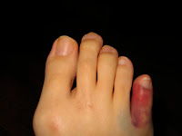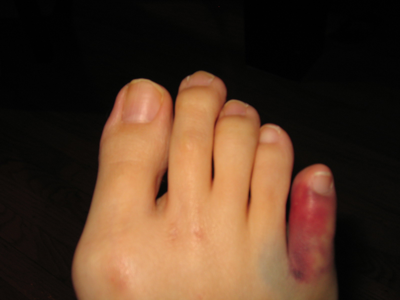 One of the most painful expereinces of my life was catching my toe on a corner and breaking my pinky. It was swollen, off-colored and engulfed in gauze for weeks. To this day it makes a little popping noise when I bend it a certain way – Here are a few of my favorite pictures I have collected of some other people’s broken pinkies.