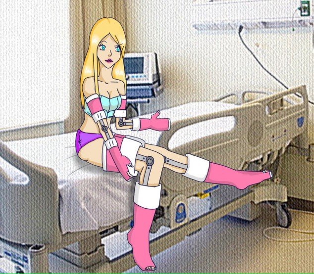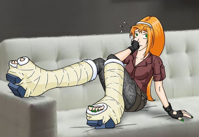 via castgirls blog sl44n3sh original character saya in a long leg cast with cute black toenail polish – dunno where